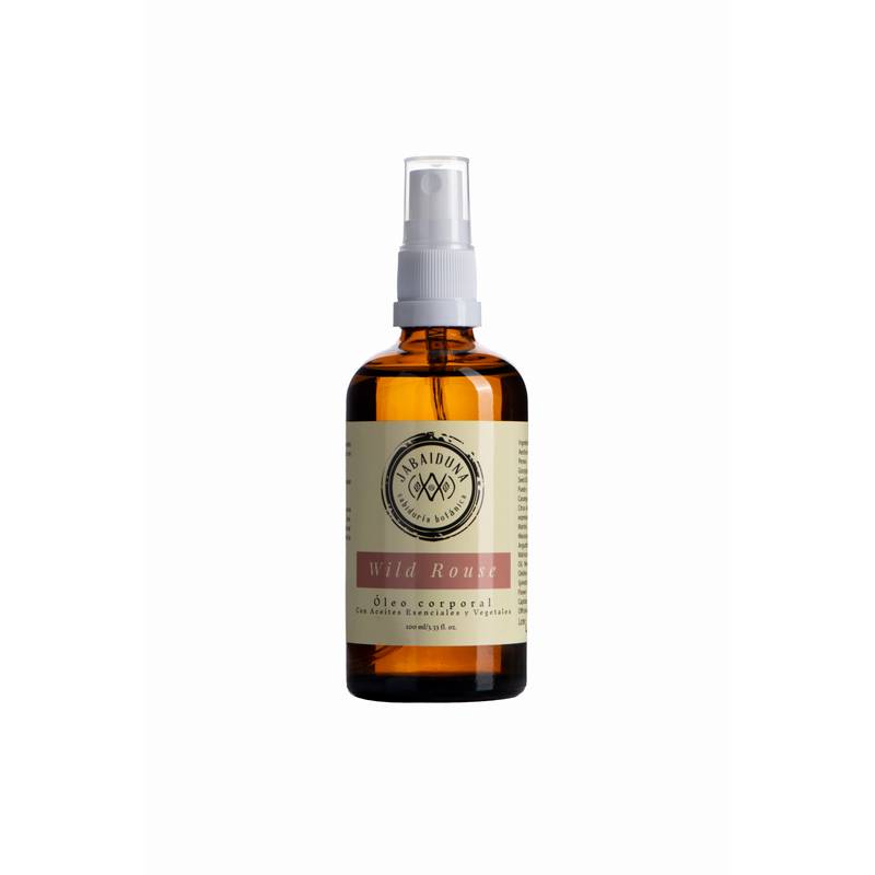 Wild Rose Aceite de masaje de Rosa Jabaiduna gracias a el Aceite esencial de Rosa esta mezcla aumenta el colágeno de la piel, rejuvenece y limpia. Creado para masajes Relajantes.